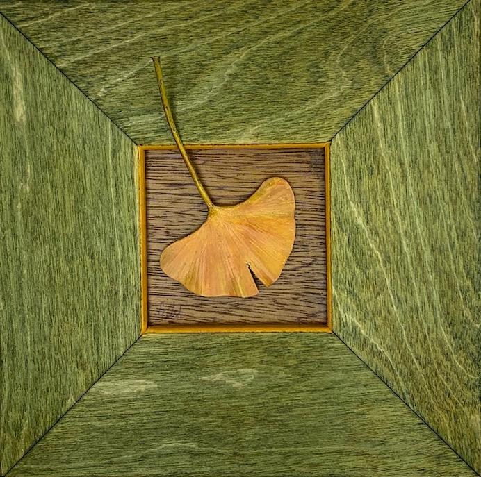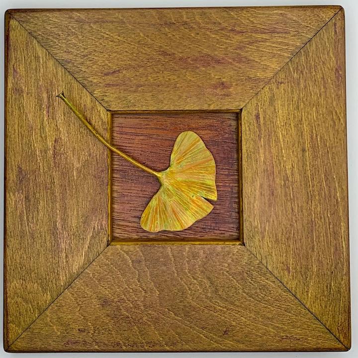 Copper Ginkgo Leaf in Goldenrod Colored Frame $175